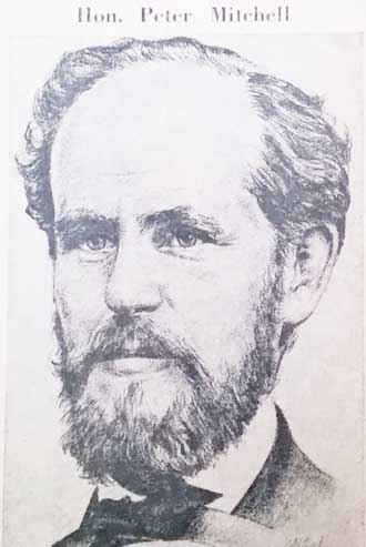 (as per Edith McAllister article in paper, former Newcastle Librarian) Peter Mitchell was born in Newcastle on January 4, 1824, the son of Peter Mitchell and Barbara Grant, who came to the Miramichi from Aberdeen Scotland in 1818. Peter Senior was a hotel and tavern keeper. Peter Junior attended the local grammar school, studied law and was called to the bar in 1848. He and John M Johnson formed a legal partnership and both became active in politics of the province.