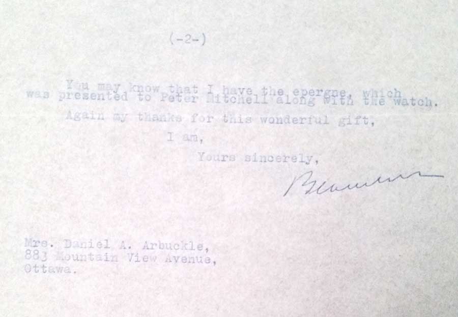 Mrs. Arbuckle responded to Beaverbrook’s letter by supplying him with information from the newspaper about the watch at auction: